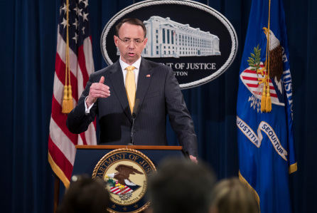 Knowing full well his boss wants to fire him, Rosenstein had the unenviable task of explaining the latest move by the Mueller investigation to the media, namely that Russian citizens were being indicted for operating things such as ‘troll farms’ to sway public opinion.